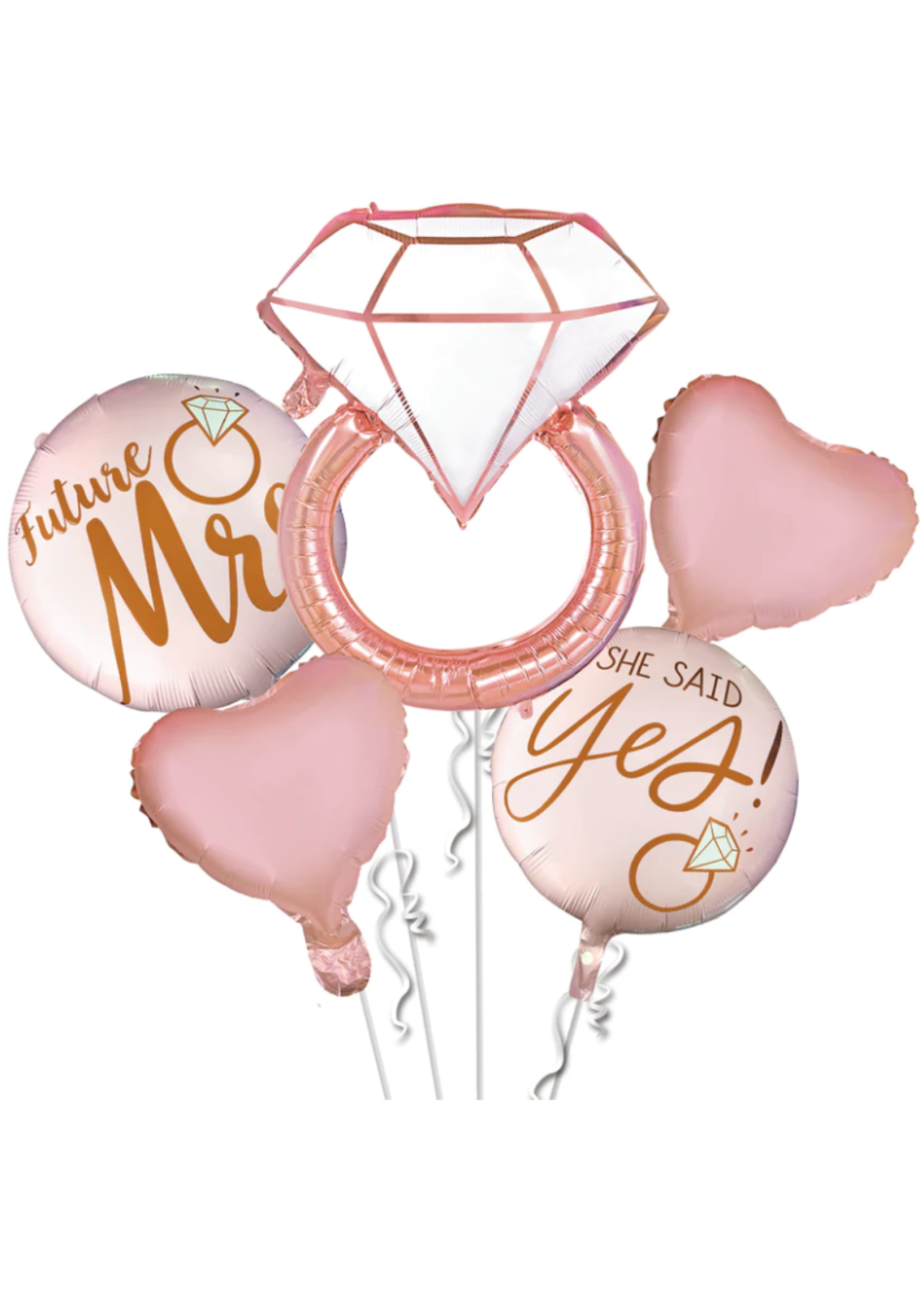 5 szt. balonów (pierścionek 60x83cm, serce 45cm x2, okrągły 30cm x2)