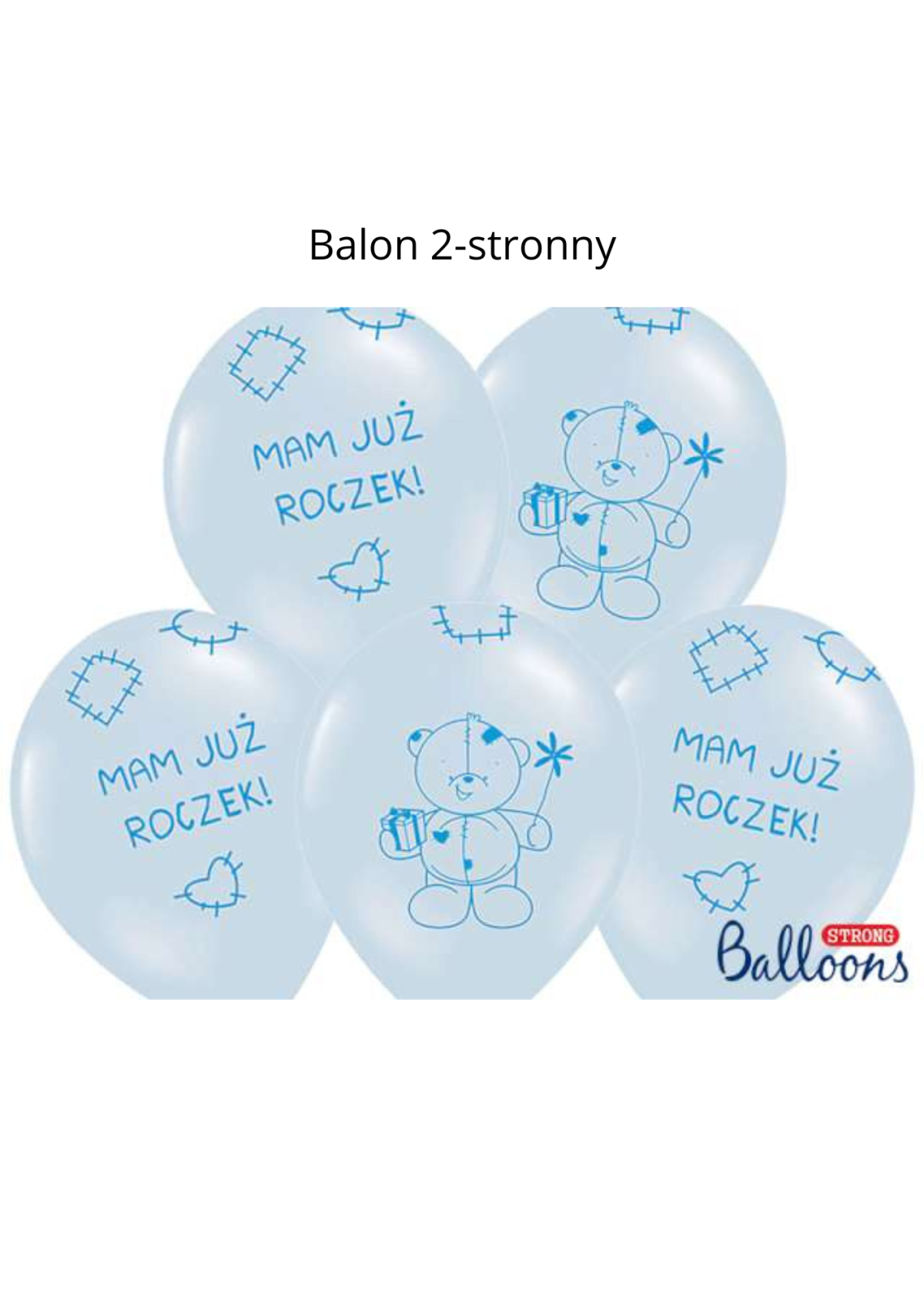 Balon 2-stronny: z jednej stronny miś i łatka, z drugiej strony napis "Mam już Roczek"