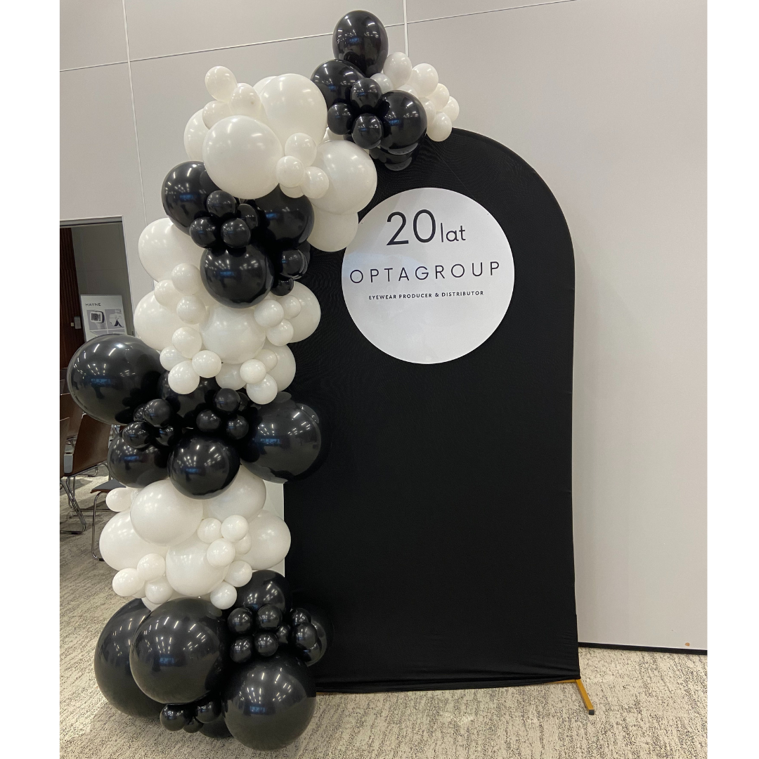 - girlanda balonowa organiczna (z balonów różnej wielkości) biało-czarna