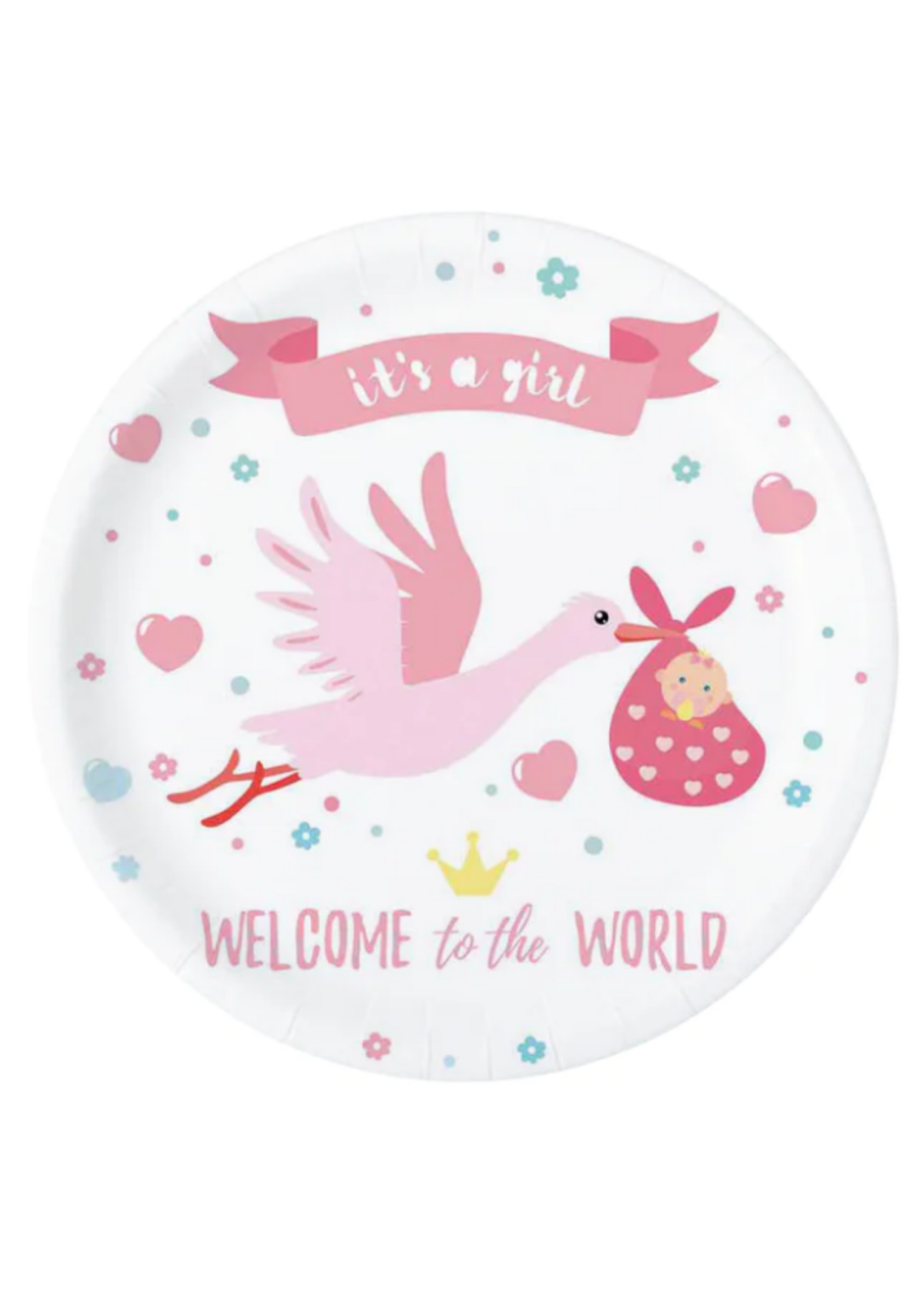 Talerzyki It's a Girl bocian róż